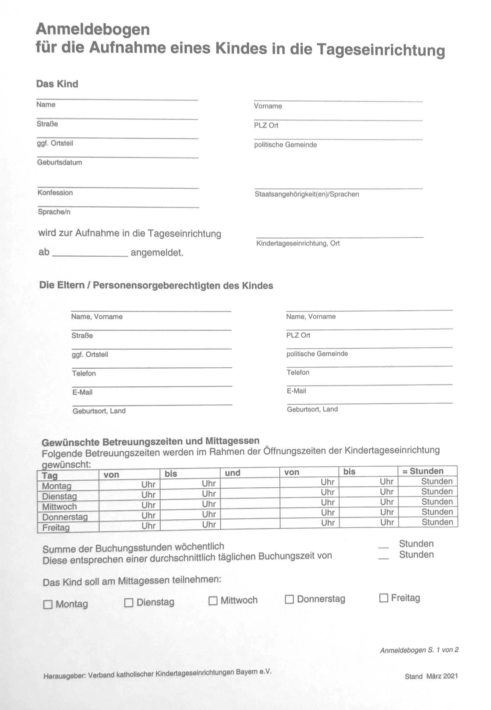 Anmeldebogen