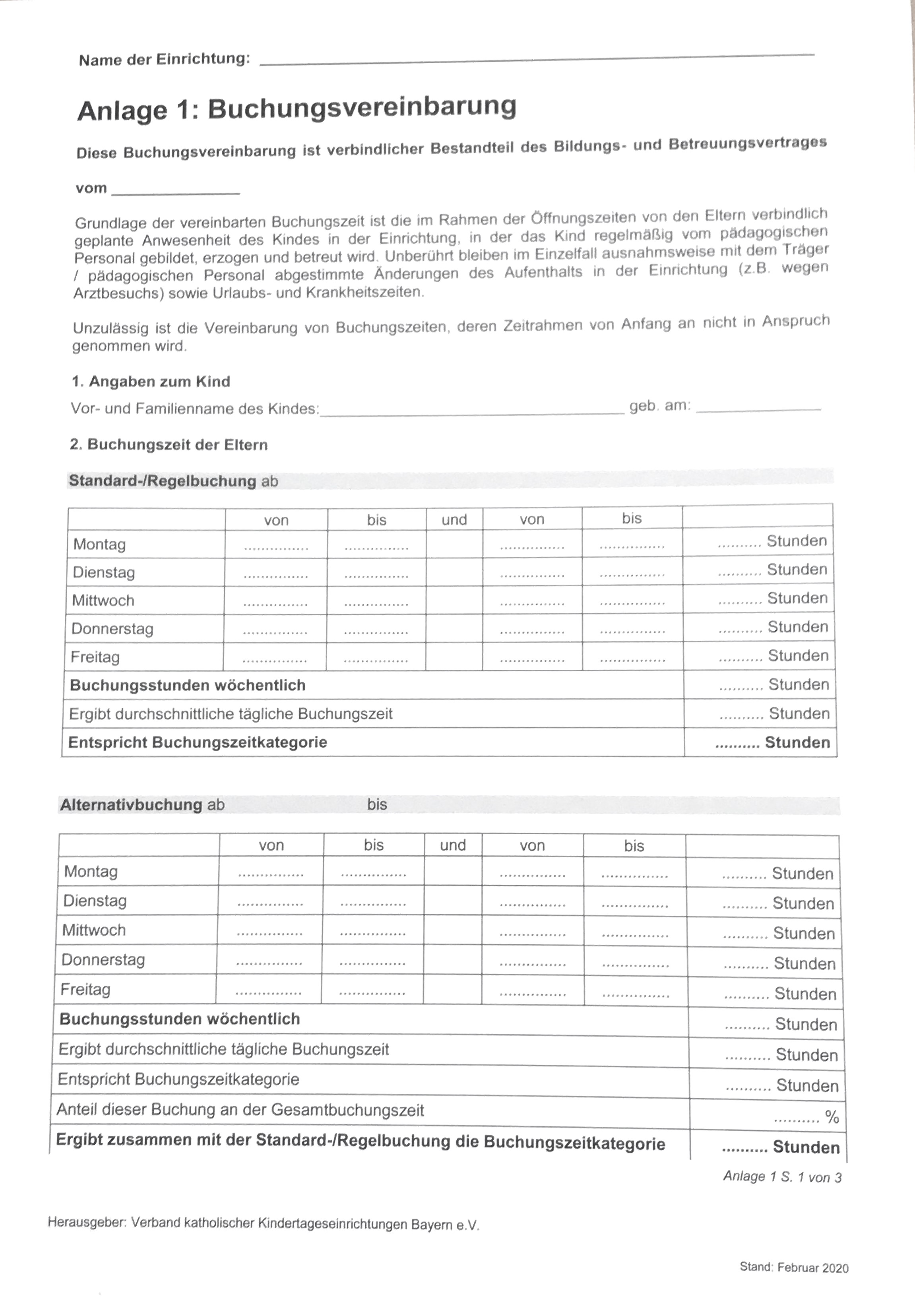 Anlage 1: Buchungsvereinbarung