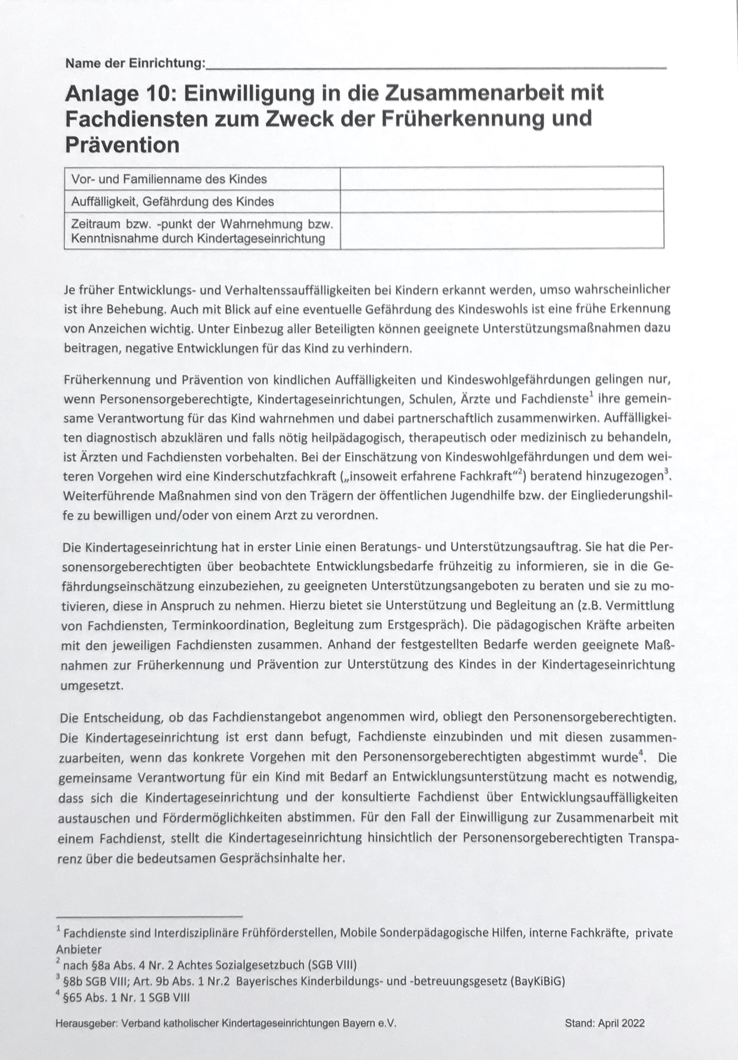 Anlage 10: Einwilligung in die Zusammenarbeit mit Fachdiensten
