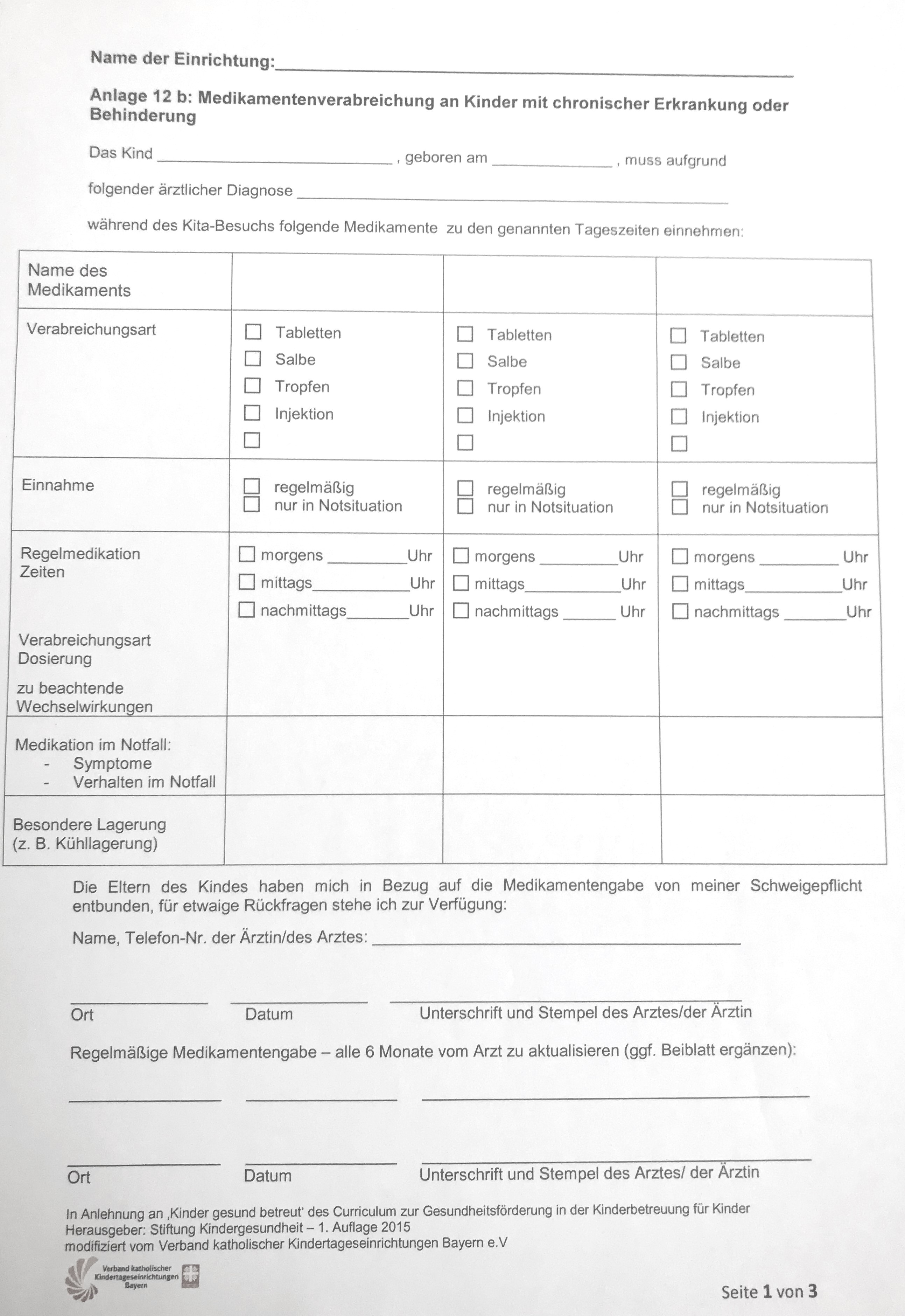 Anlage 12b: Medikamentenverabreichung bei chronischer Erkrankung oder Behinderung