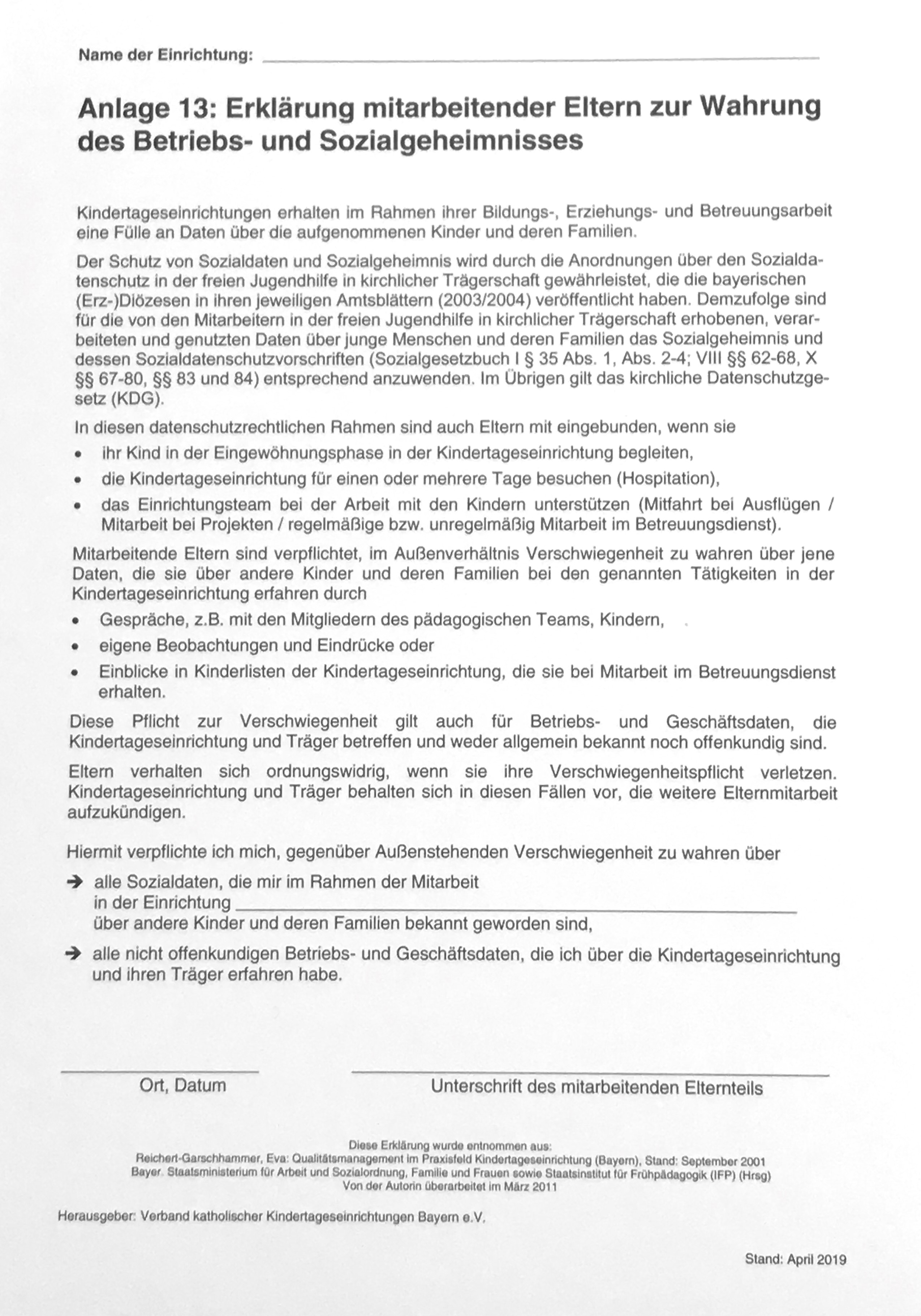 Anlage 13: Erklärung mitarbeitender Eltern