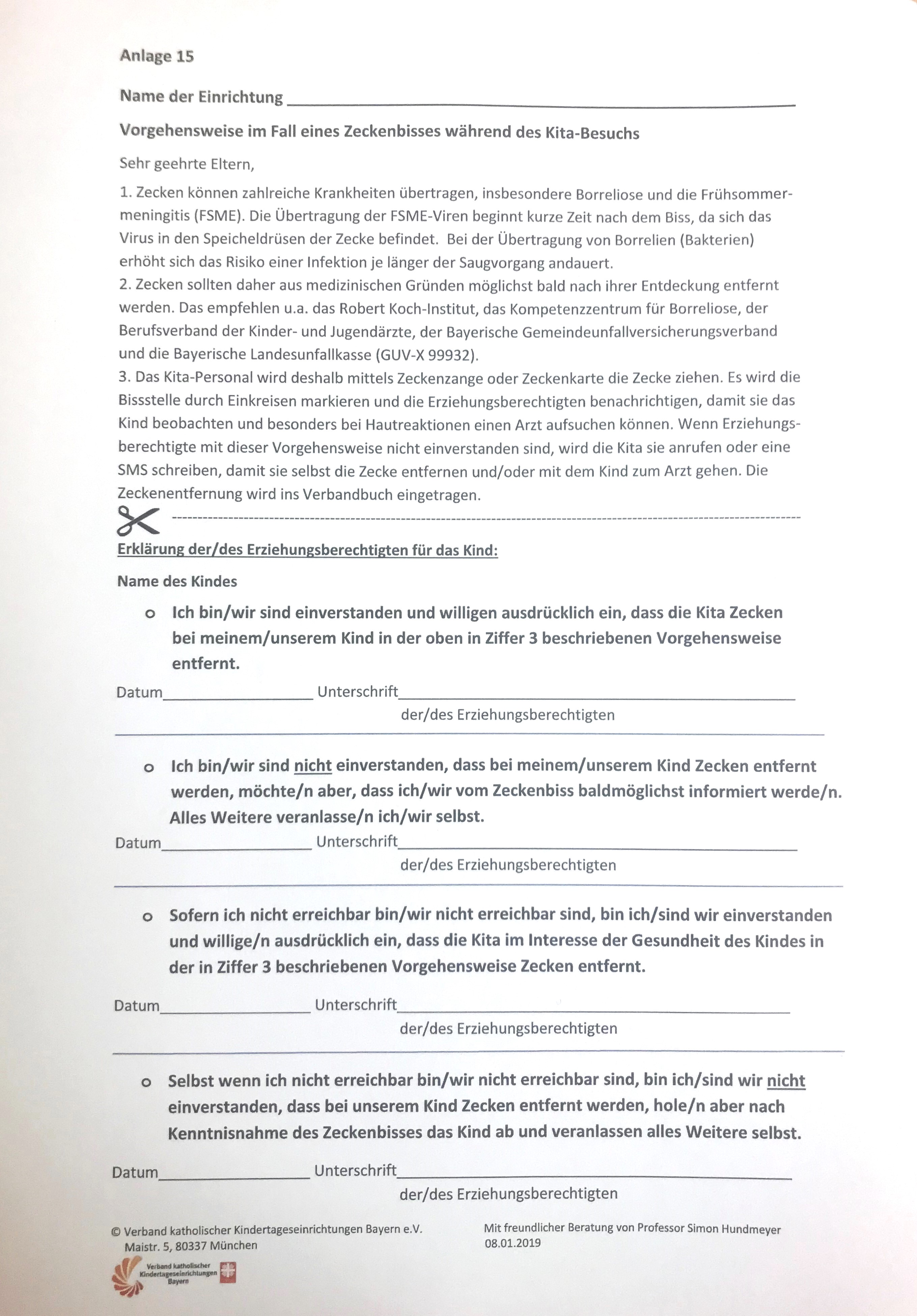 Anlage 15: Vorgehensweise Zeckenbiss