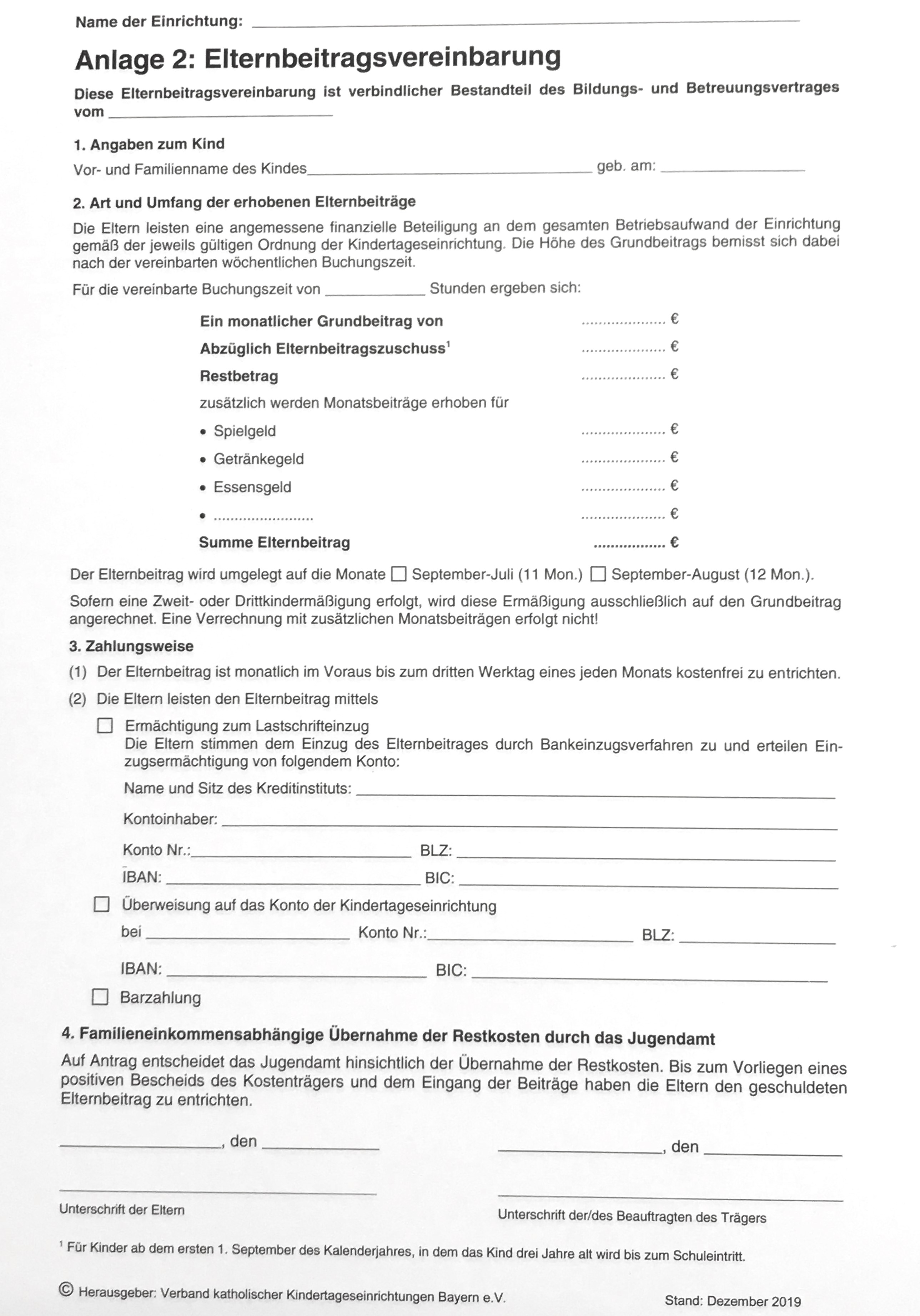 Anlage 2: Elternbeitragsvereinbarung