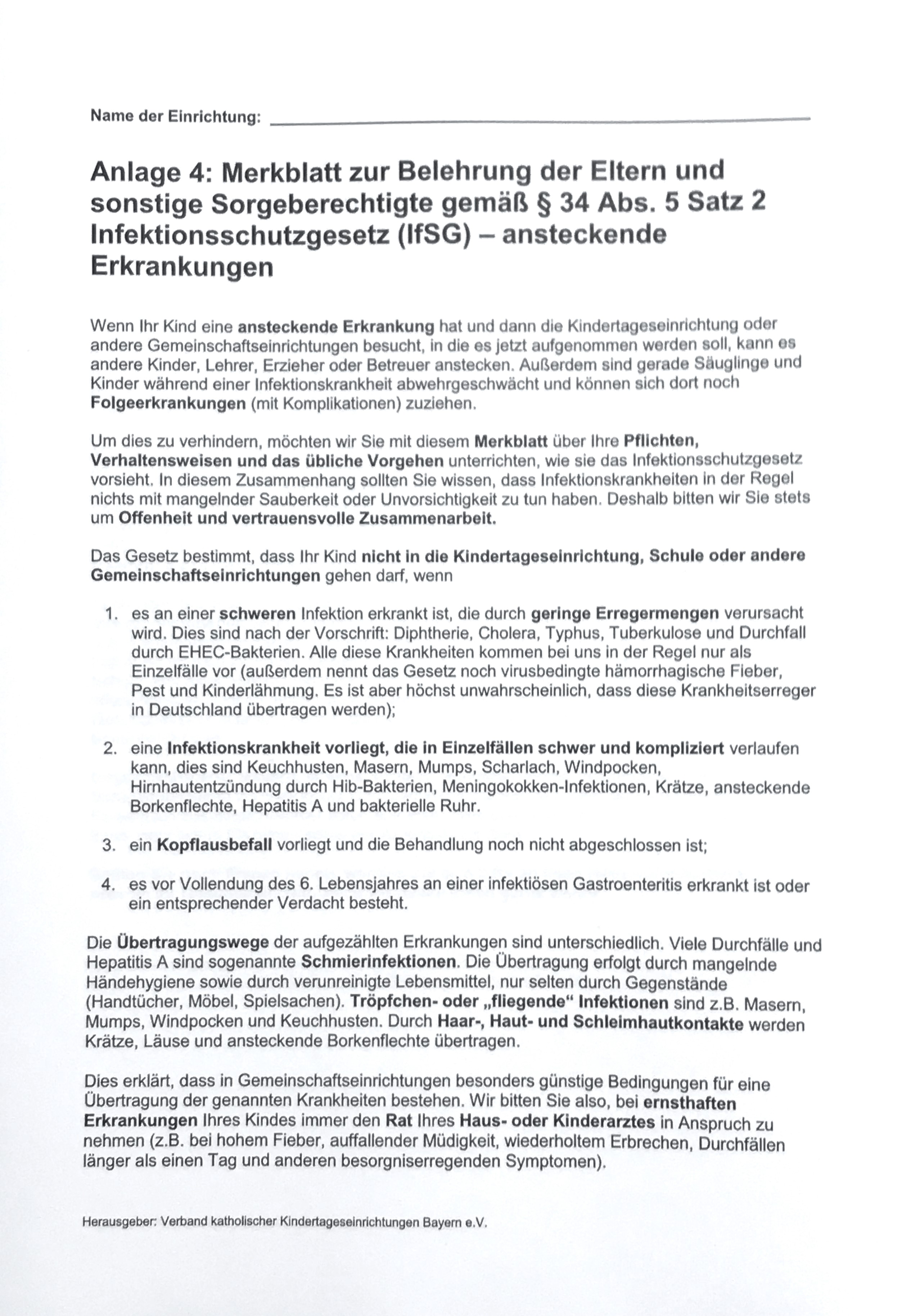 Anlage 4: Belehrung zum Infektionsschutzgesetz