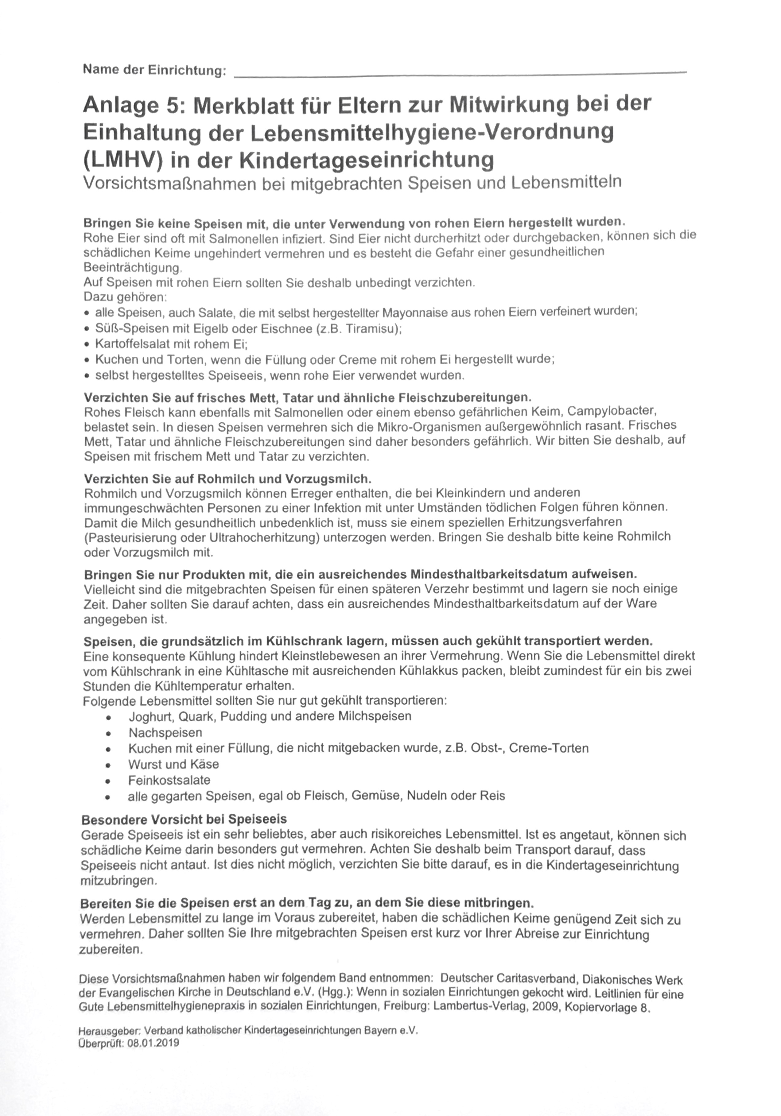 Anlage 5: Information zur Lebensmittelhygiene-Verordnung