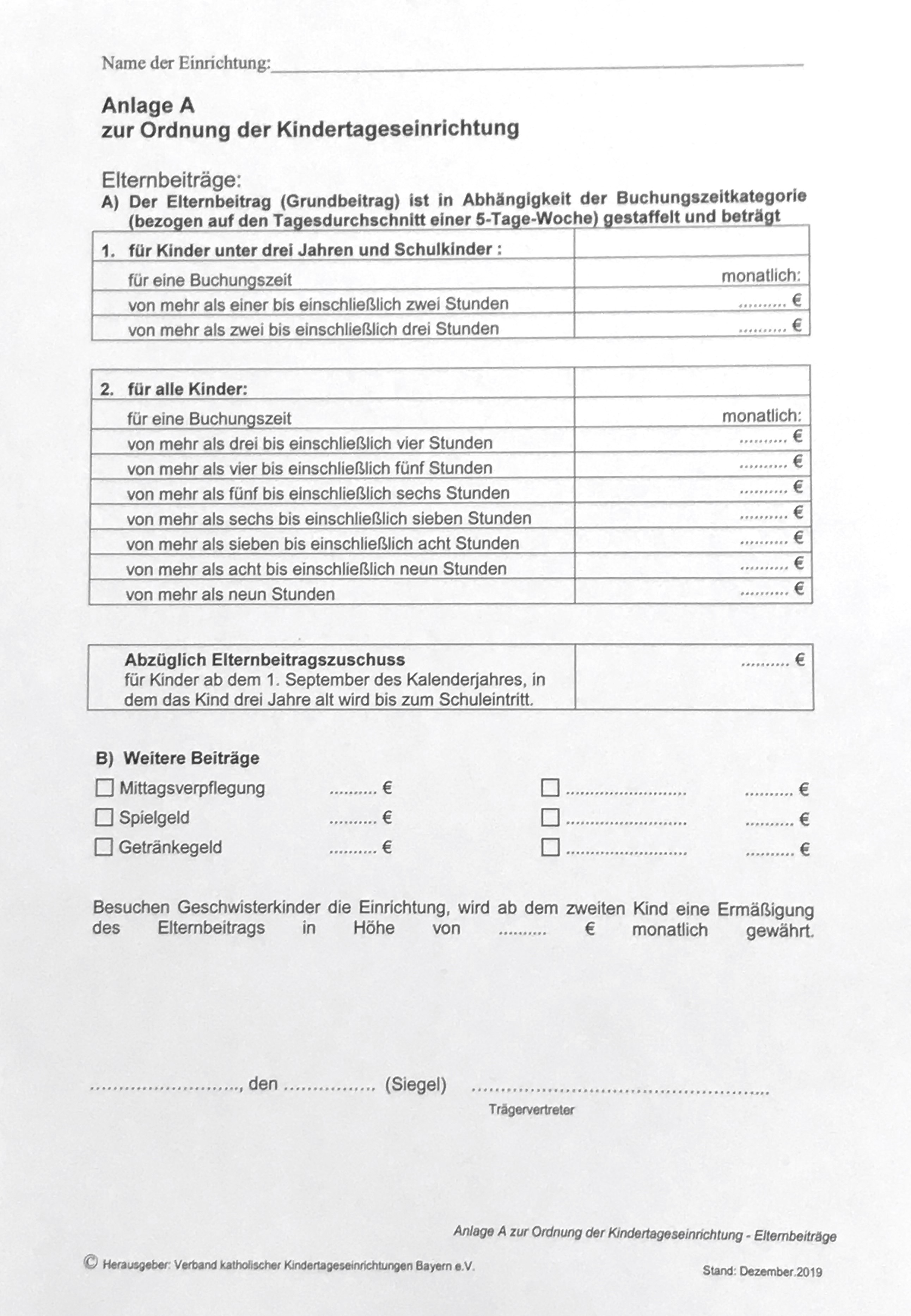Anlage A: zur Ordnung der Kita - Elternbeiträge